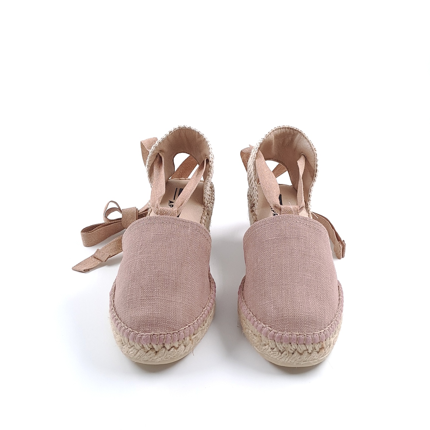 Alpargata artesanal en lona de algodón en tonos lisos con suela de yute y goma. Altura cuña 4,5cm.
